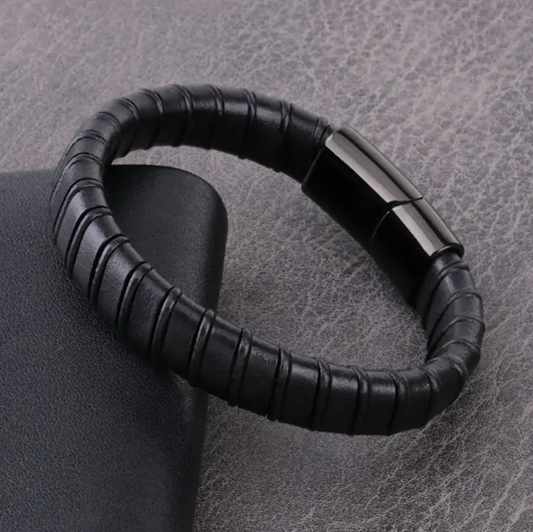 Brazalete de cuero negro con cierre auto-lock de 21 cm