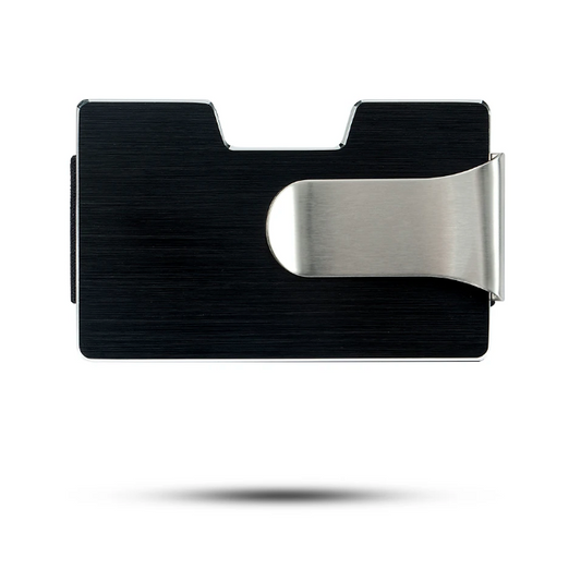 Tarjetero de aluminio y fibra de carbono equipada con bloqueo RFID color negro