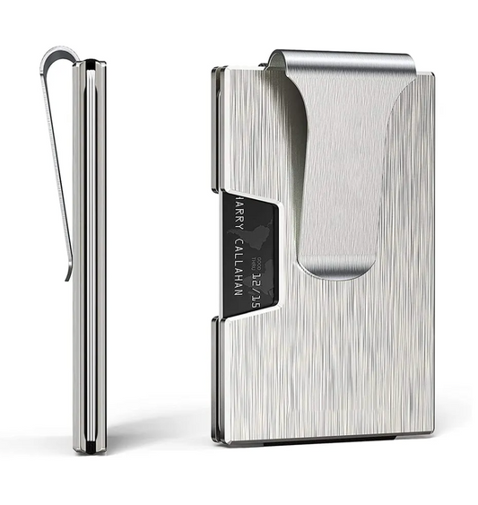 Tarjetero de aluminio y fibra de carbono equipada con bloqueo RFID color Plata