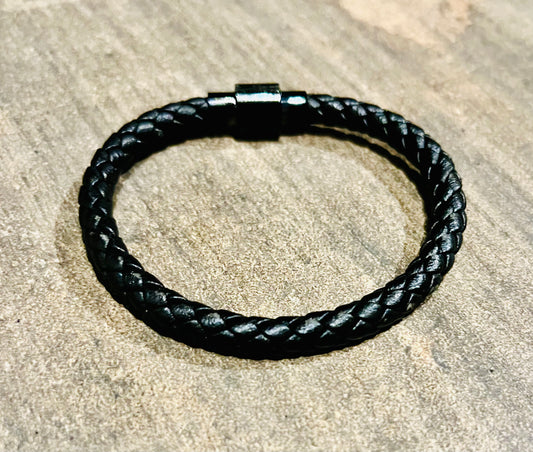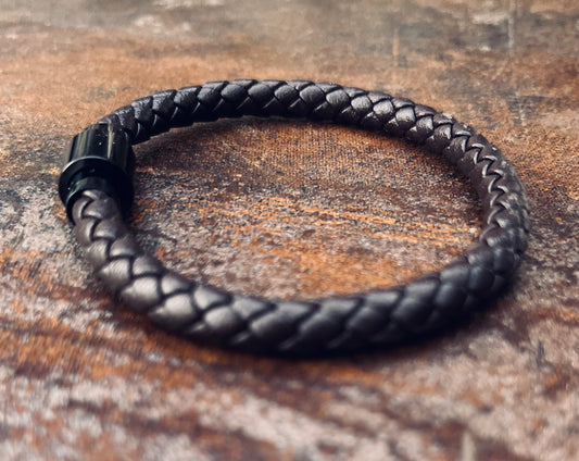 Pulsera de cuero genuino trenzado para hombre con cierre magnético 21 cm