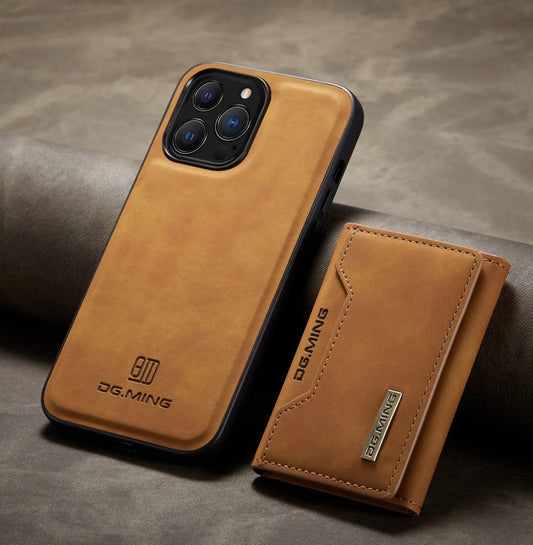 Funda y cartera de cuero magnética desmontable para iPhone 14 Pro Max color Marrón (Brown)