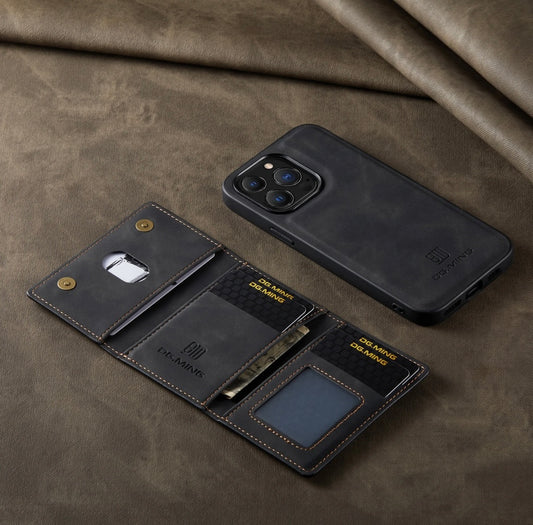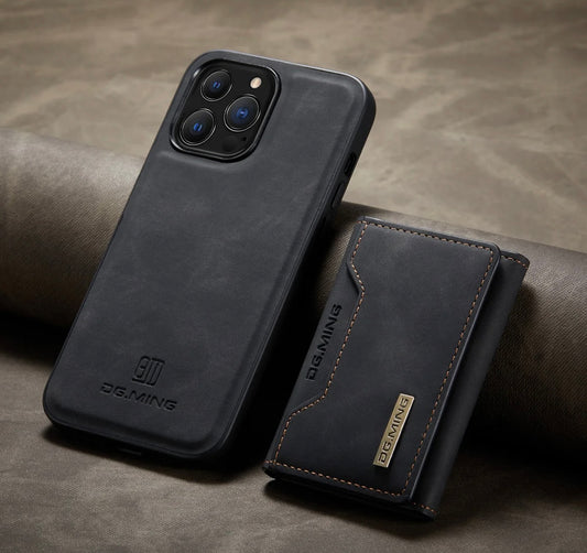 Funda y cartera de cuero magnética desmontable para iPhone 14 Pro Max color Negro