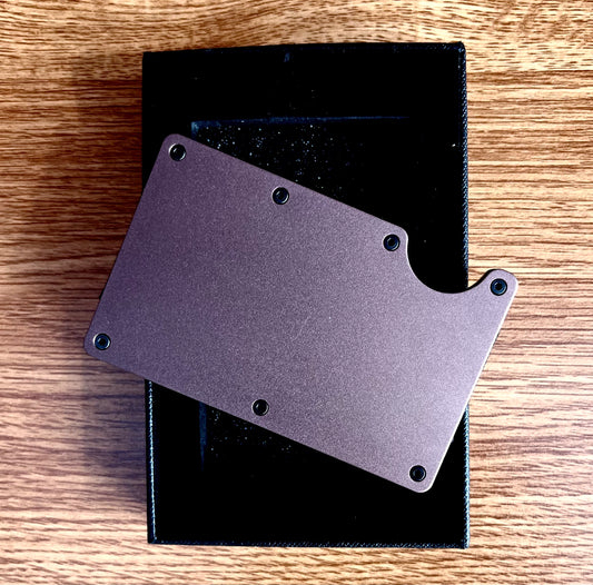 Tarjetero minimalista de aluminio reforzado con protección RFID color Café